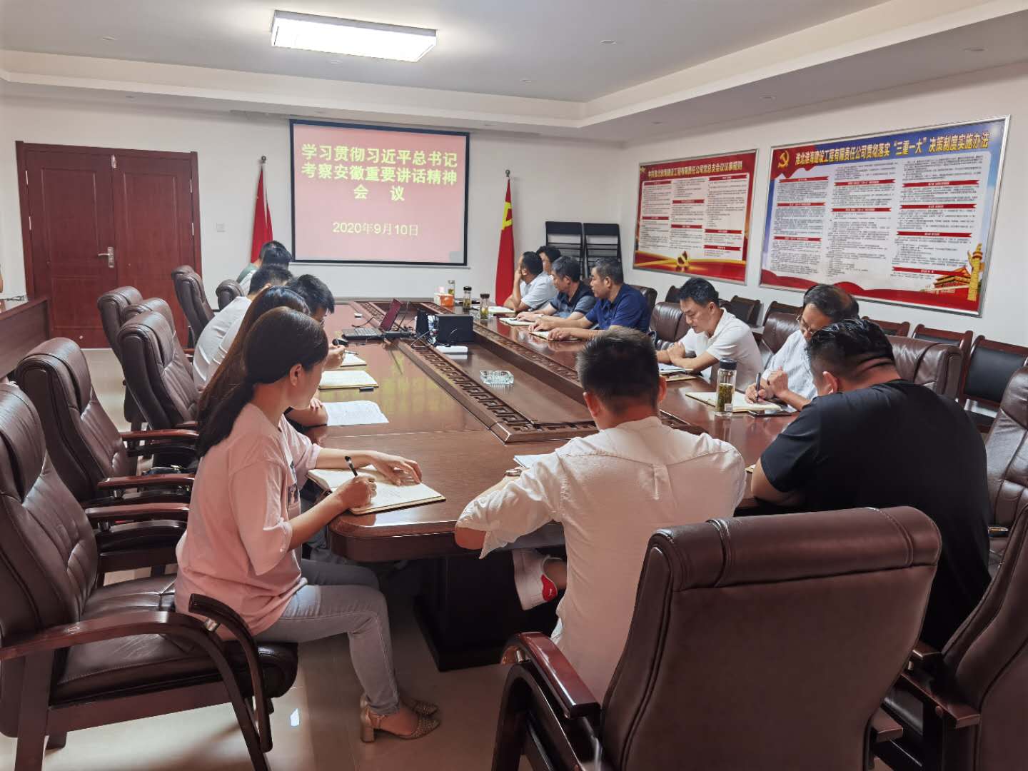 9月10日上午,淮海建工召開黨總支(擴(kuò)大)會(huì)議,深入學(xué)習(xí)貫徹習(xí)近平總書記考察安徽重要講話指示精神,安排部署重點(diǎn)任務(wù)。建投集團(tuán)黨委委員、淮海建工總經(jīng)理王平強(qiáng)調(diào),公司上下要深刻領(lǐng)會(huì)習(xí)近平總書記重要講話指示精神的重大意義、準(zhǔn)確把握其核心要義,緊密結(jié)合工作實(shí)際,推動(dòng)重要講話指示精神在公司落地生根、開花結(jié)果,用實(shí)際行動(dòng),踐行“兩個(gè)維護(hù)”。