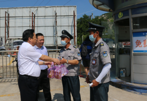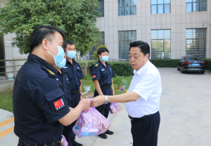 在送清涼活動中,保安公司一線職工無懼酷暑環(huán)境,堅守在自己的工作崗位上,默默付出,盡職履責。周開宇對烈日下工作的職工給予了高度贊揚,將關愛送到大家的心坎上,并叮囑大家在做好疫情防控工作的同時做好防暑降溫工作,注意勞逸結合,確保各項工作的安全運行。
