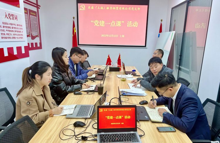 2022年12月12日上午,東盛融資租賃公司黨支部開展“黨建一點課”活動,傳達學(xué)習(xí)黨的二十大報告精神。東盛黨支部全體黨員干部和職工干部參加了此次活動。