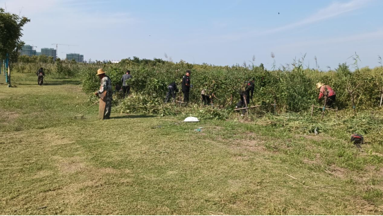 黨員干部和積極分子率先帶頭,配合物業(yè)人員、保綠人員對金沙戲水園區(qū)內(nèi)的雜草、沙灘內(nèi)的垃圾等進(jìn)行清除,該次清理范圍為環(huán)湖西路(從博瑞特南處停車場入口到人民路停車場再到南湖路處),長達(dá)約4公里,共計投入70余人次,20臺余設(shè)備。