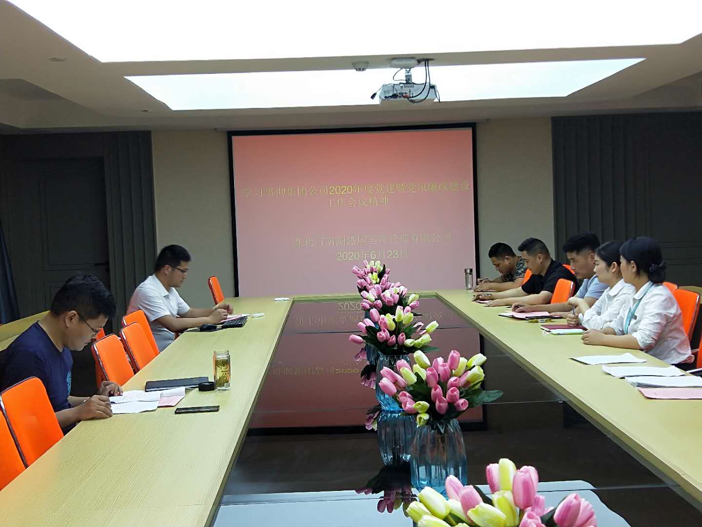 6月23日下午,南湖酒店黨支部組織全體黨員及部分員工在公司二樓會議室學(xué)習(xí)傳達(dá)集團(tuán)公司2020年度黨建暨黨風(fēng)廉政建設(shè)工作會議精神。