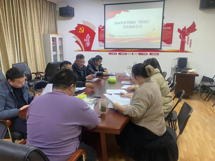 2024年春節(jié)將至,為貫徹落實(shí)《市建投集團(tuán)紀(jì)委關(guān)于做好2024年元旦春節(jié)期間糾“四風(fēng)”樹新風(fēng)工作的通知》文件精神,勞代公司黨支部召開了2024年春節(jié)前糾“四風(fēng)”黨風(fēng)廉政會議,全體黨員及公司員工參加了本次會議。