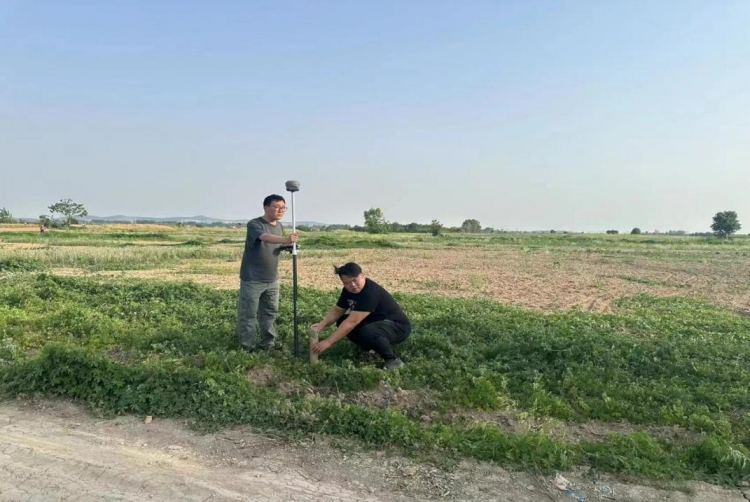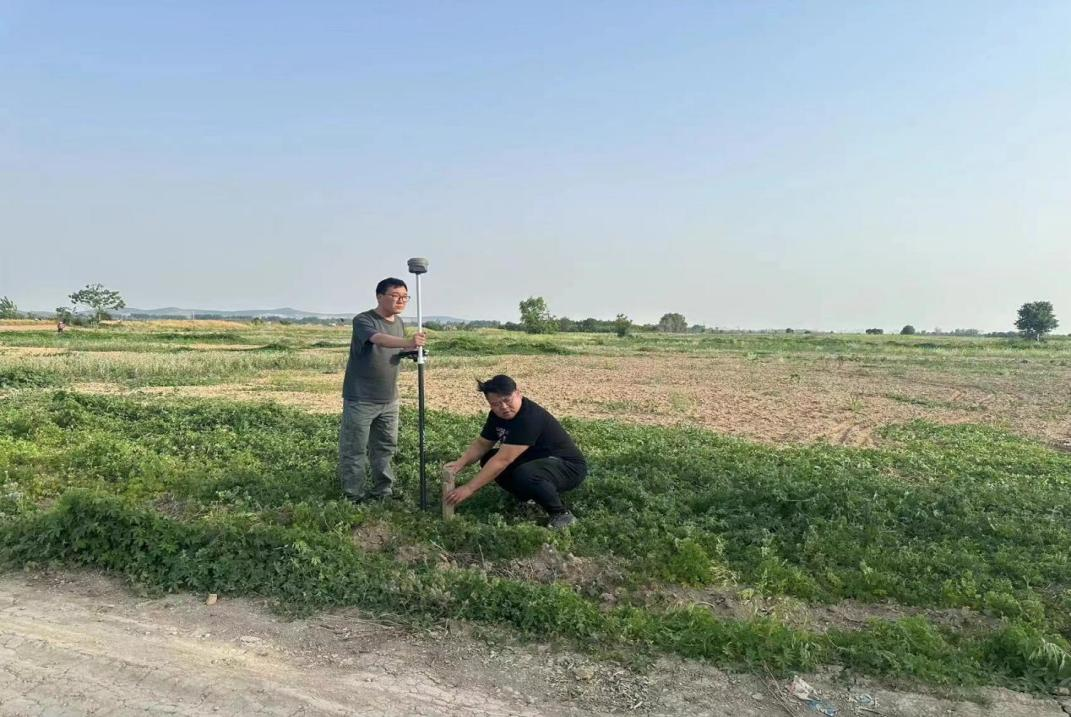 工程部左永宏、張勇等人認真核對地塊信息、指認土地邊界,使用GPS測繪儀等儀器圍繞地塊邊界丈量土地整體面積,記錄及整理相關(guān)數(shù)據(jù)……一系列環(huán)節(jié)有條不紊地進行,有效保證了測量數(shù)據(jù)的真實性和準確性。