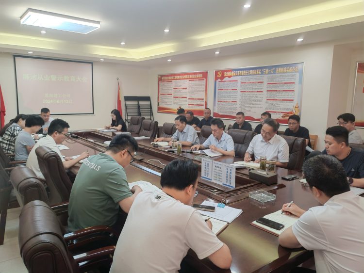 2024年6月13日上午,淮海建工公司召開(kāi)廉潔從業(yè)警示教育大會(huì),公司班子成員、部門(mén)負(fù)責(zé)人、項(xiàng)目經(jīng)理參加了會(huì)議。