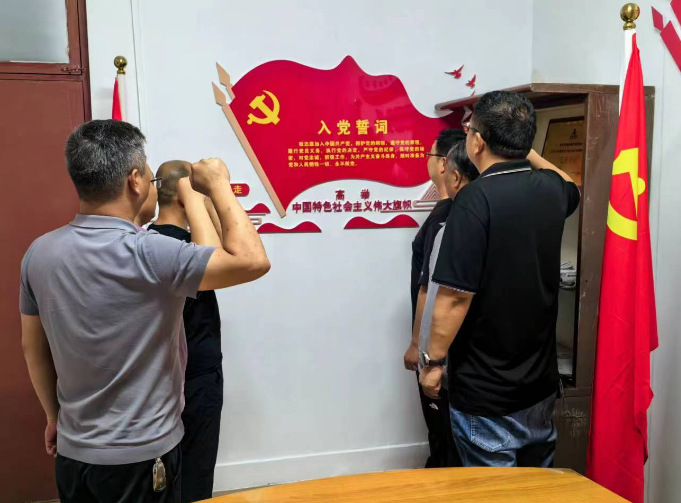 隨后在支部書記周宏謀的帶領下,重溫入黨誓詞悟初心。面對鮮紅的黨旗,全體黨員再一次舉起自己的右手,莊嚴的向黨組織宣誓。入黨誓詞,讓黨員同志們熱血沸騰,充滿信念,感召黨員同志們努力實踐,勇于奉獻,激勵黨員不斷進取,奮斗終身。