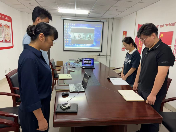 上午9點(diǎn)18分,隨著防空警報(bào)聲響起,全體黨員干部肅立默哀,共同緬懷在“九一八”事變中英勇無畏、拋頭顱灑熱血的革命先烈。那聲聲警報(bào),仿佛在訴說著那段沉重的歷史,提醒著每一位黨員勿忘國恥,牢記使命。