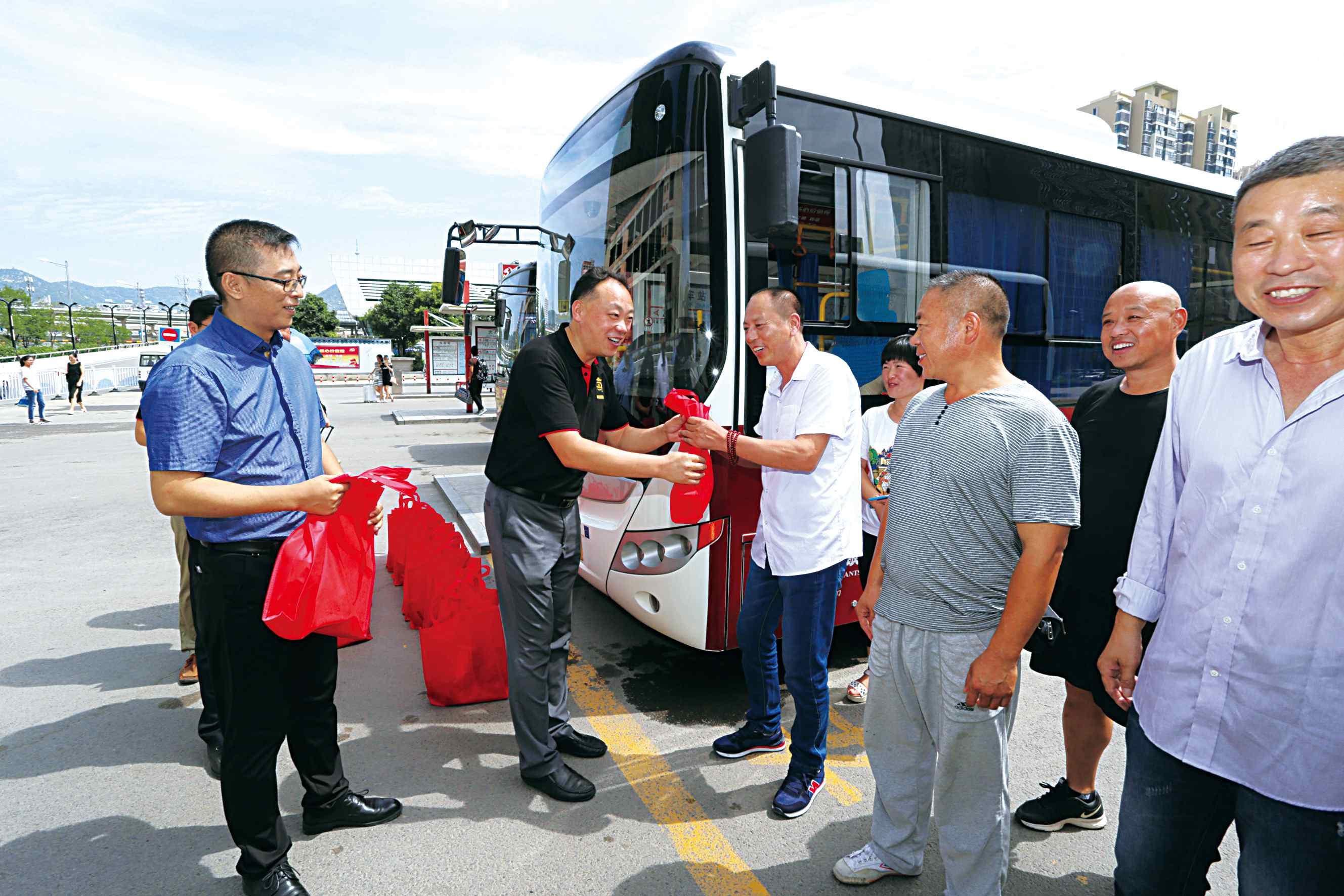 每到一處,南投黨支部慰問組都會(huì)將內(nèi)含毛巾、香皂、飲料、洗衣液等防暑降溫用品的清涼包一一送到一線職工手中,細(xì)心囑咐他們?cè)诟邷靥鞖庀鹿ぷ饕欢ㄒ⒁庾陨戆踩妥龊梅朗罱禍?,并向他們?yōu)榛幢笔形拿鲃?chuàng)建發(fā)展付出的辛勤勞動(dòng)表示衷心的感謝。拿到清涼包的職工們紛紛表示,有各級(jí)黨委和組織的關(guān)愛,一定會(huì)努力工作,為廣大市民營(yíng)造更加優(yōu)質(zhì)的出行服務(wù)。