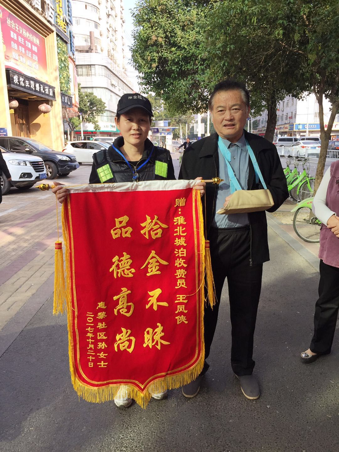 導(dǎo)語:10月31日上午,失主王乃志向淮北城市泊車管理有限公司收費(fèi)員王鳳俠贈(zèng)送錦旗,衷心感謝!收費(fèi)員王鳳俠拾金不昧,我被這位普通的收費(fèi)員高尚的品質(zhì)深深感動(dòng)。