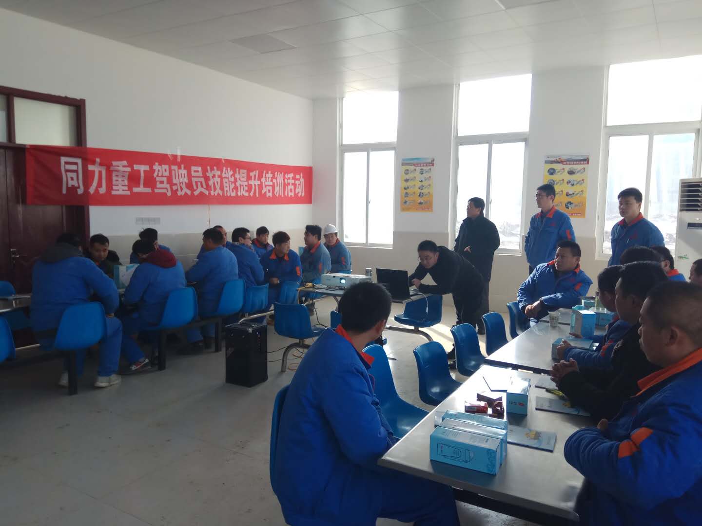 2018年1月30日上午9點,通鳴公司生產技術部聯合同力重工廠家技術人員在通鳴公司食堂對生產技術部礦車駕駛員進行技能提升培訓。