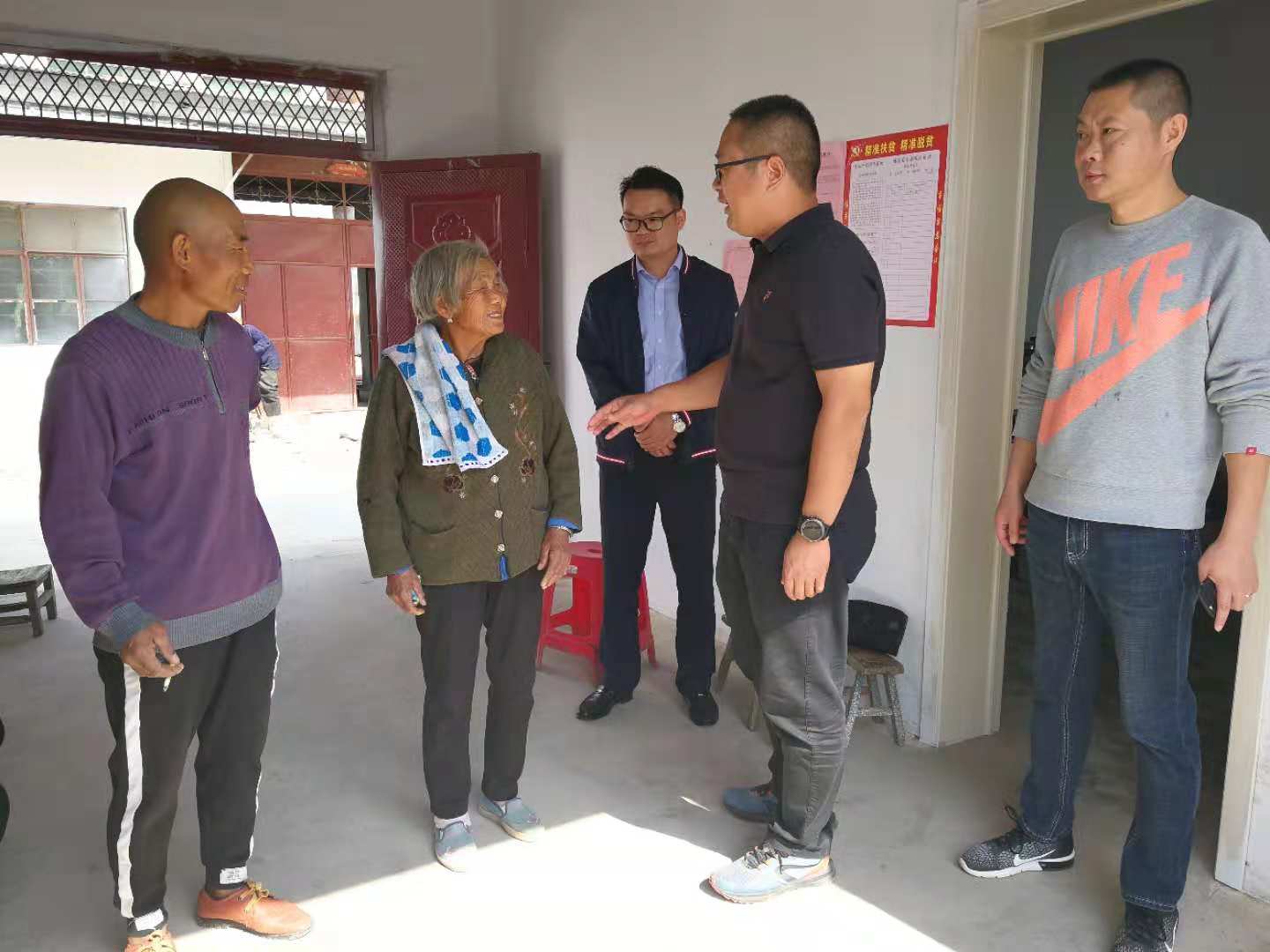 10月13日上午,保障房扶貧小組來到孫嚴(yán)玲老人家中積極開展“同吃一桌飯,共做一件事,脫貧一條心”活動(dòng),自帶食材與老人一起吃午飯、拉家常,了解老人近期的生活、身體狀況,并幫助老人打掃了屋內(nèi)和庭院,臨行囑咐孫嚴(yán)玲老人天氣漸涼注意保暖。孫嚴(yán)玲表示很開心,由衷感嘆:黨的政策真好,讓她感到很溫暖。