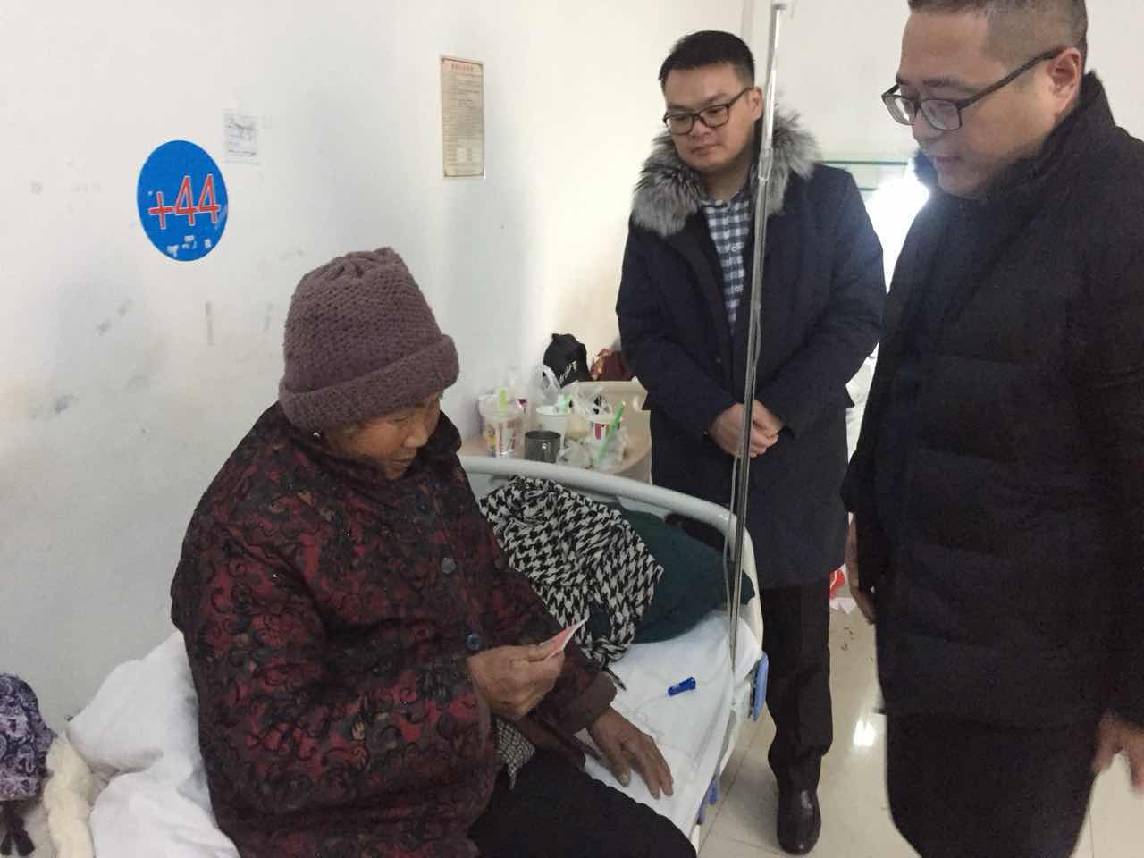 孫嚴玲老人近期因腸道不適,在濉溪縣中醫(yī)院住院。1月30日上午,保障房公司扶貧小組一行3人前往醫(yī)院看望慰問孫嚴玲老人,送去了慰問金及新春祝福,同時找到主治醫(yī)生詢問老人的病因及身體恢復情況,并囑咐老人要遵醫(yī)囑好好調養(yǎng)身體。