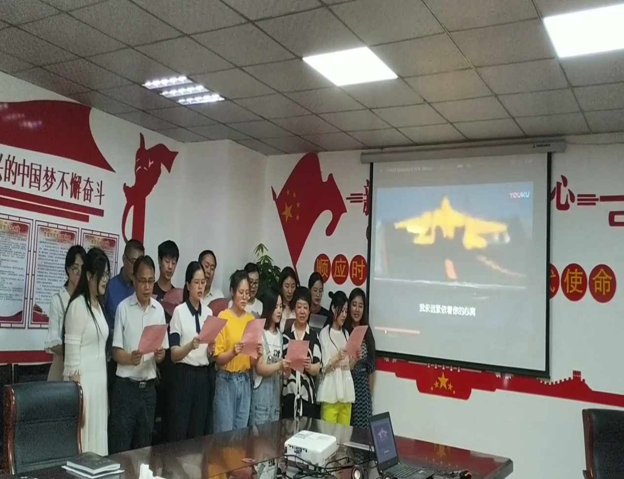 學習結(jié)束后,全體成員共同觀賞了歌曲《我和我的祖國》,并經(jīng)過多次認真排練后,以全體大合唱的形式傾情歌唱了《我和我的祖國》,以此表達對祖國的無限熱愛和誠摯祝福。