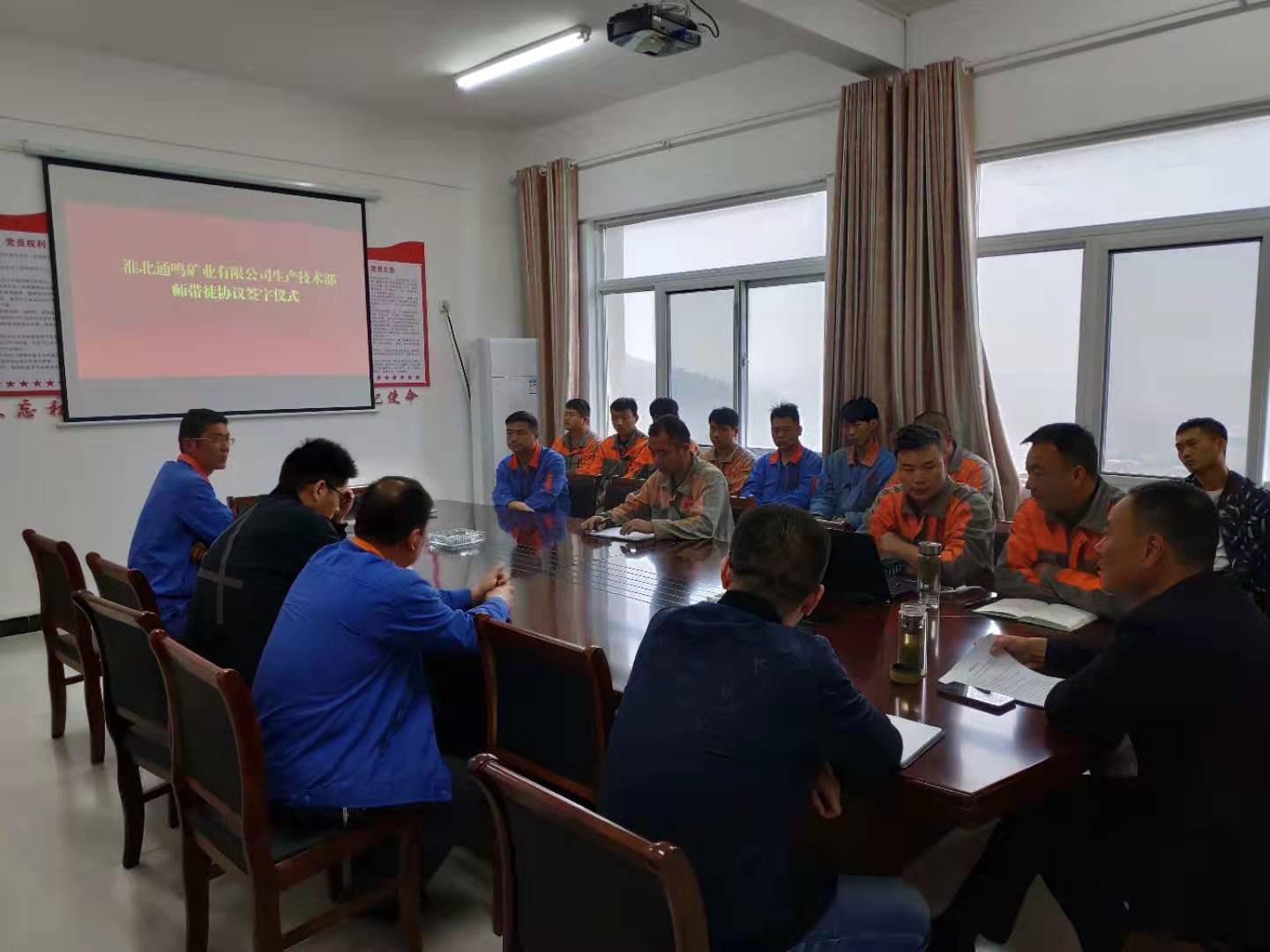 為提高通鳴礦業(yè)員工專業(yè)技術(shù)水平和業(yè)務(wù)技能,發(fā)揮骨干員工在技術(shù)和經(jīng)驗方面的優(yōu)勢,2019年10月10日上午10時,通鳴礦業(yè)總經(jīng)理程南華、副總經(jīng)理張震、毛鴻顯及各部門負責人、生產(chǎn)技術(shù)部機電維修班全體員工在通鳴礦業(yè)三樓會議室開展師帶徒活動。